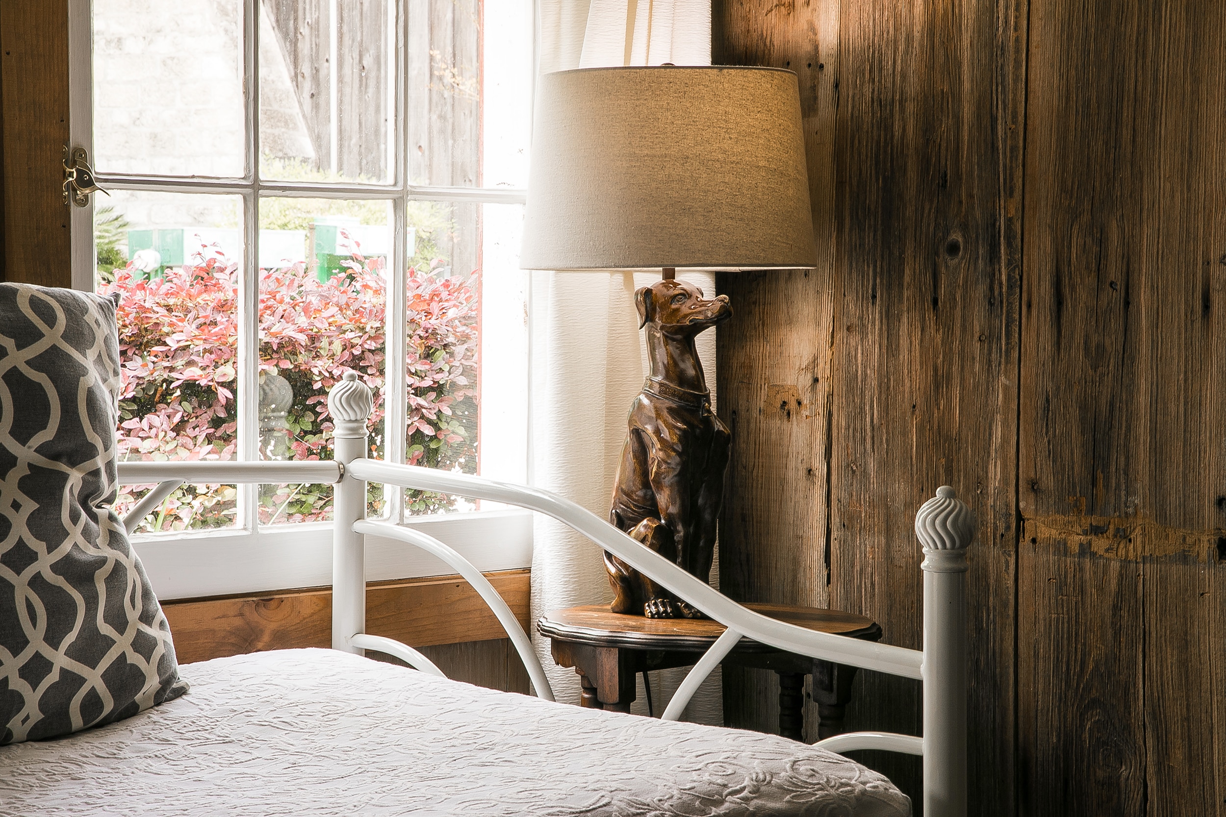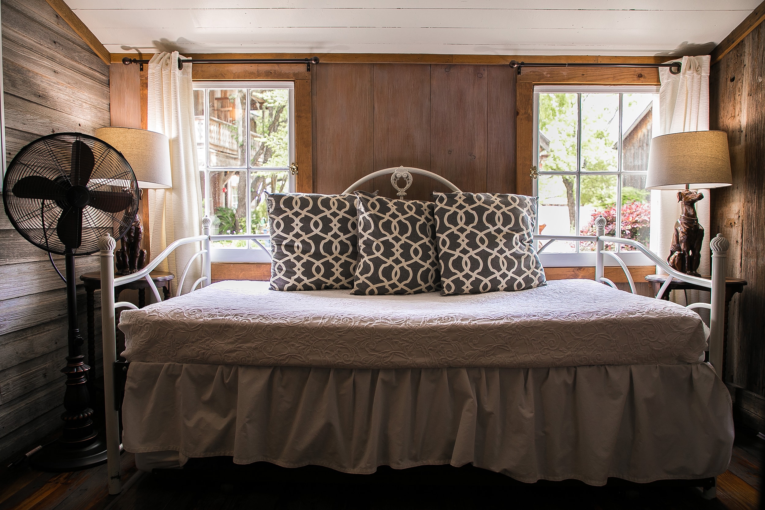 Fireside Lodge #2 features a romantic wood burning fireplace (seasonal) and front porch with rocking chairs that looks out onto the lovely arbor/gazebo area. The sitting area features a daybed trundle and bedroom has a king size bed, bathroom with shower, mini refrigerator, cable tv and a 4 cup coffee maker with 1/4 bag of coffee. This room is priced for 2 guests but can accommodate up to 4. There is a $25 charge/each for the third and fourth person.